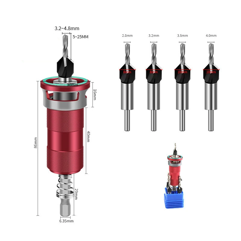 Multifunctional Countersink Drill Bits Adjustable Depth Aluminum Limit Ring High Precision Carbon Steel Bits Woodworking Tools 4 Sizes Drill Bits