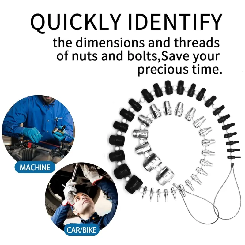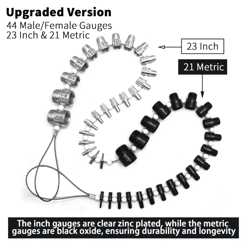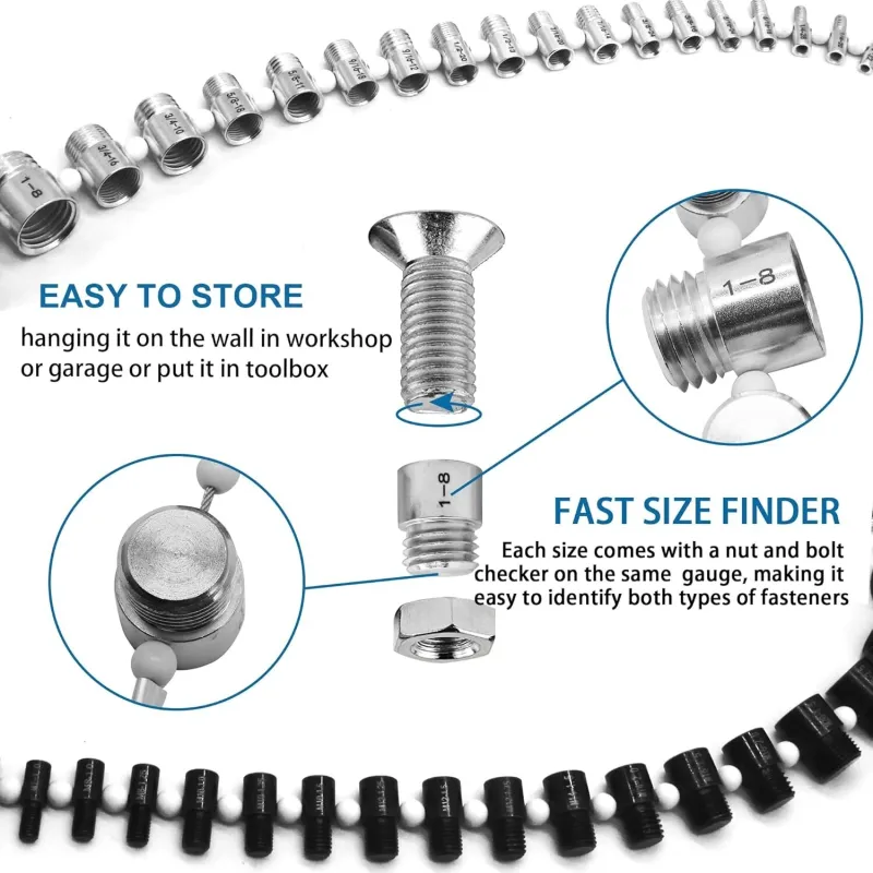 44PCS Thread Checker Nut & Bolt SWTC-44 Bundle 23 Inch & 21 Metric Sizes Stainless Steel Male Female Gauges Nut and Bolt Checker Set White & Black