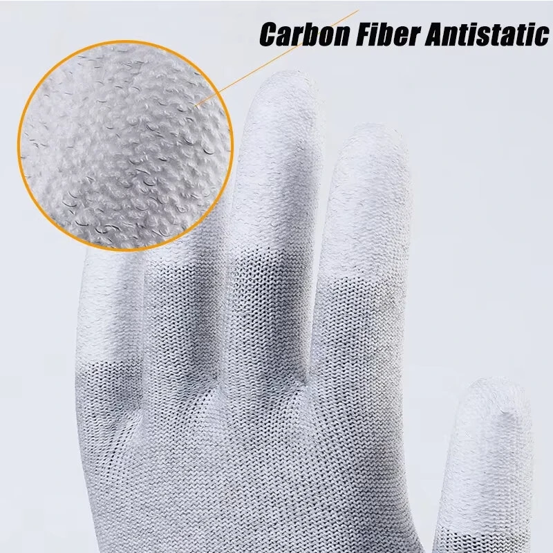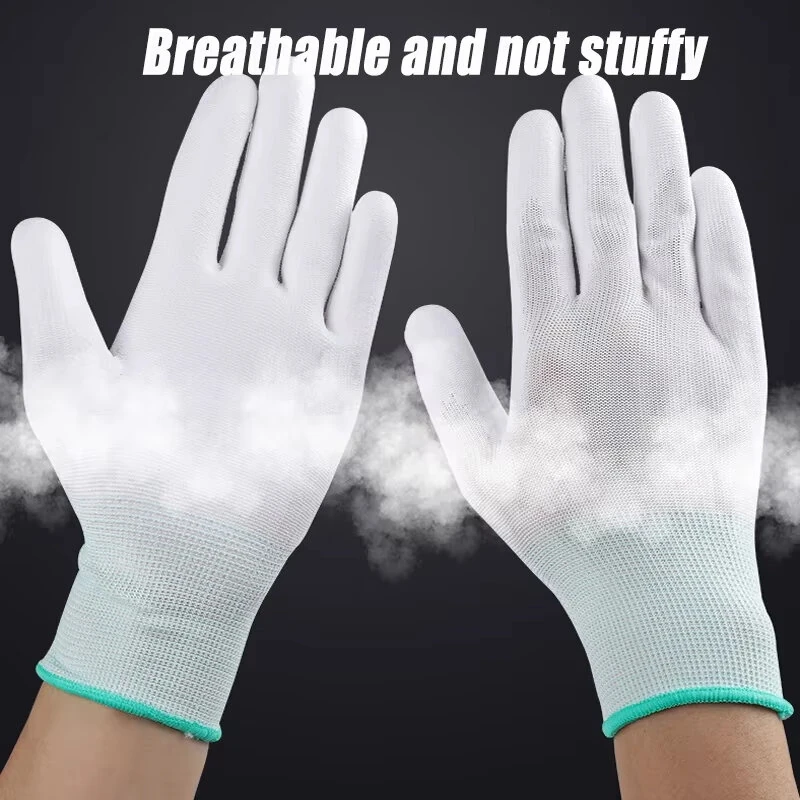 Anti Static Labor Gloves PU Coated Palm Nylon Fiber Breathable Non Slip Gloves High Elasticity Work Gloves for Assembly Inspection