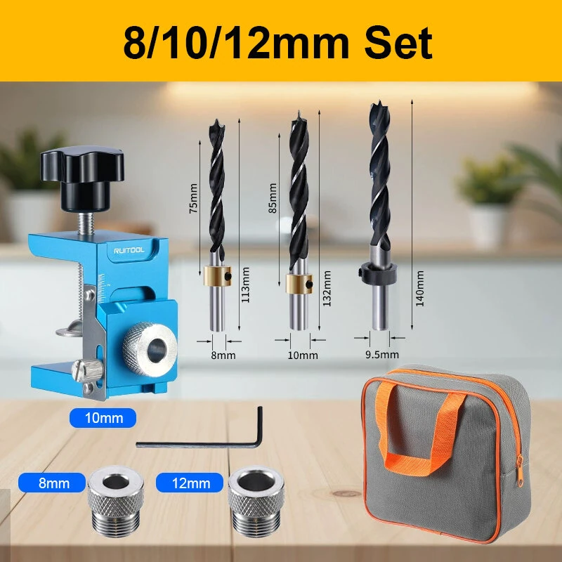 Shelf Hole Locator Aluminum Alloy Positioning Clamp 6mm 8mm 10mm 12mm Drill Sleeve Precision Laser Scale Adjustable Clamp for Woodworking Cabinet Assembly and Shelf Installation