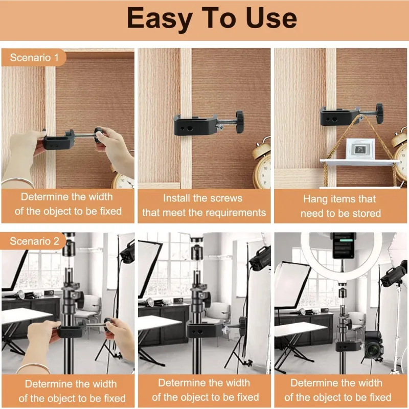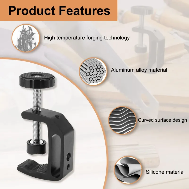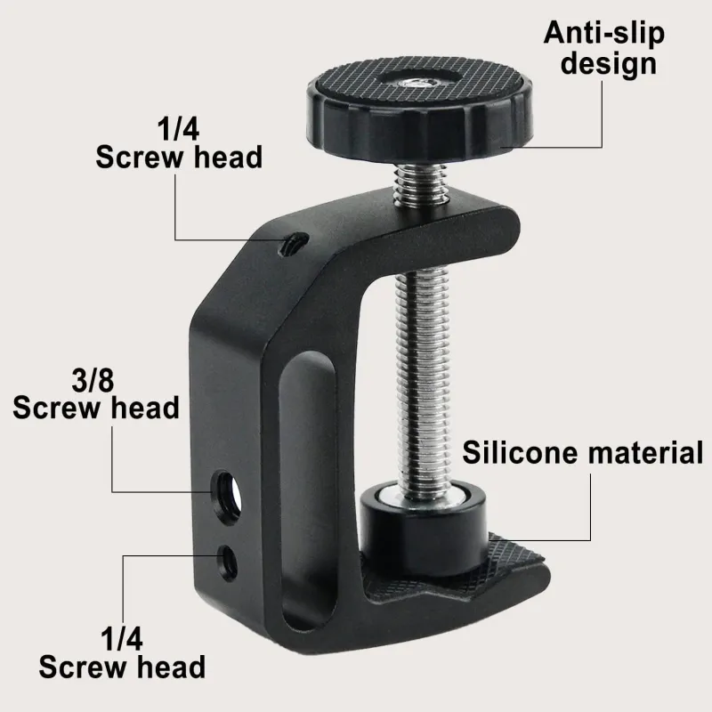 Universal C Clamp Adjustable Black Aluminum Alloy 1/4 3/8 Thread Hole Anti Slip Design Desk Mount Holder LCD Monitor Camera Accessories