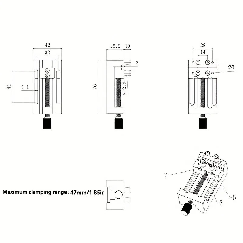 Mini Drill Press Vise Aluminum Alloy 0-47mm Clamping Range Rubber Soft Jaws Compact Adjustable Vice Clamp for Crafts Modeling Repairs Tools