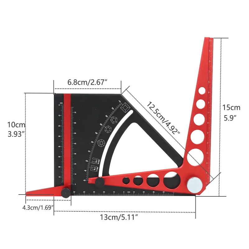 Adjustable Set Square Scriber Aluminum Alloy Movable Angle Protractor Carpentry Measurement Tool for Angle Finding and Line Scribing