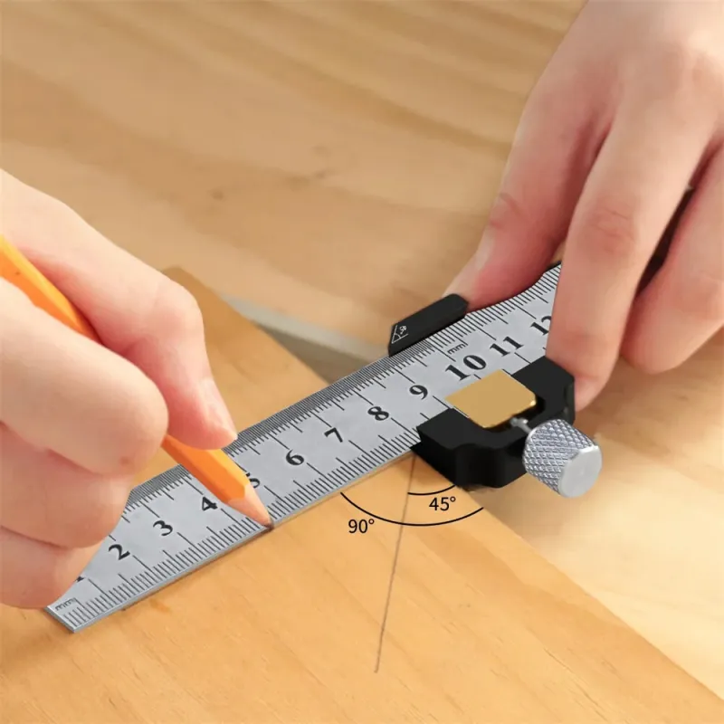 Combination Square Adjustable Steel Ruler Positioning Block 45 or 90 Degree Marking Gauge Line Scriber Fixed Position Measuring Tool