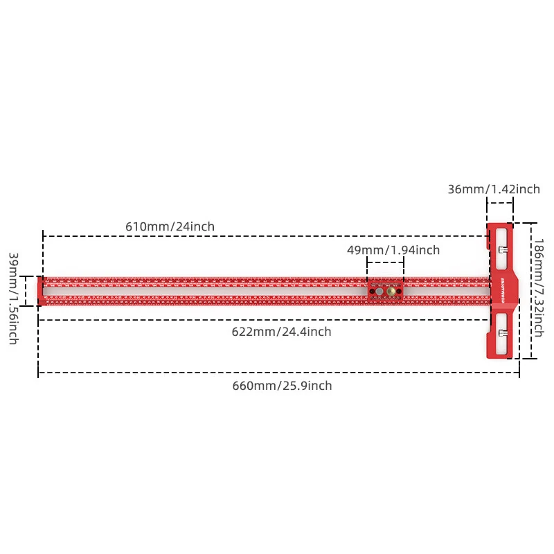 ENJOYWOOD TS-24 Scribing Ruler Multi-Function 400mm/600mm Snap-In Slider 360 Marking Thickened Base Adjustable Length 400mm/600mm for Precision Tasks