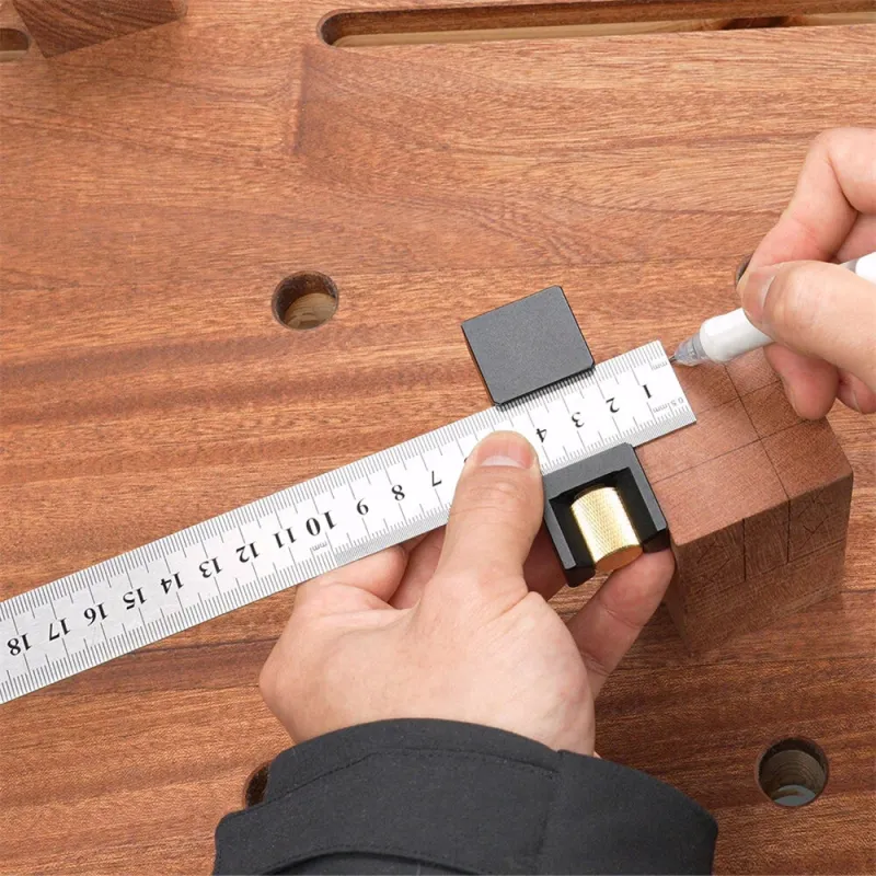 GANWEI Steel Ruler Positioning Block Adjustable CNC Aluminum Alloy Brass Dual Scale 330MM Metric and Inch for Precision Measuring