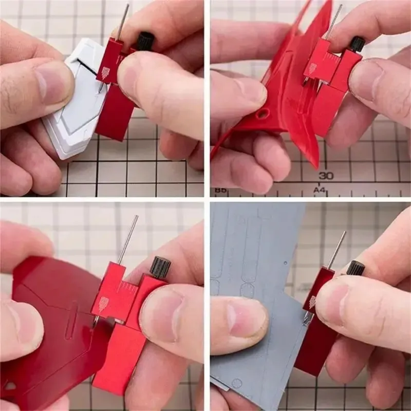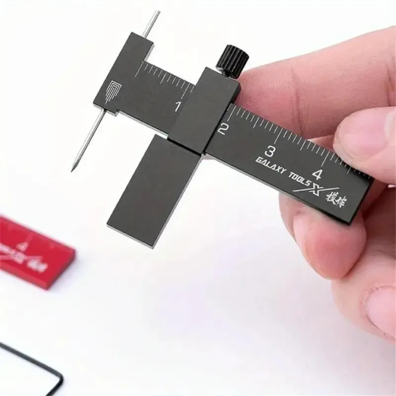 Isometric Parallel Marker Adjustable T-square Mini Carving Ruler Aluminum Alloy SKH-51 Steel Needle for Precision Model Marking Red/Black