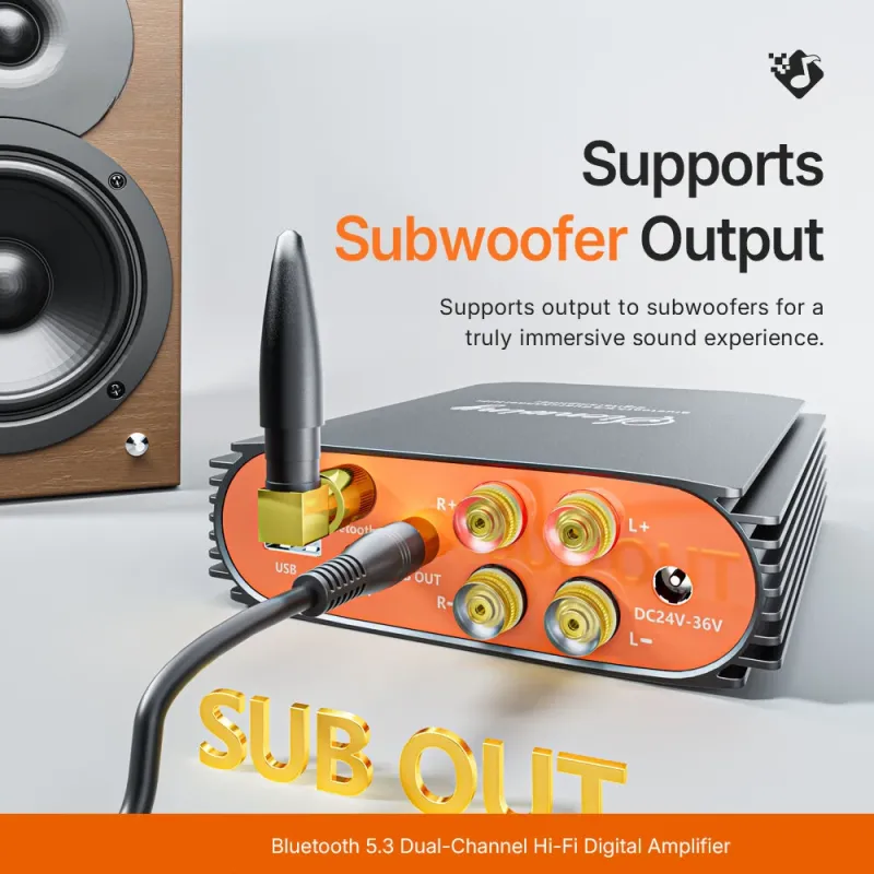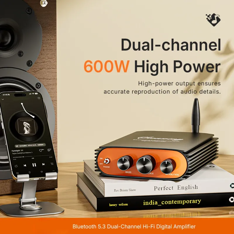 YS-KL5 Bluetooth 5.3 HiFi Digital Amplifier 600W Output Dual Channel TPA3255 Chip Supports Subwoofers AUX USB Audio Input Zinc Alloy