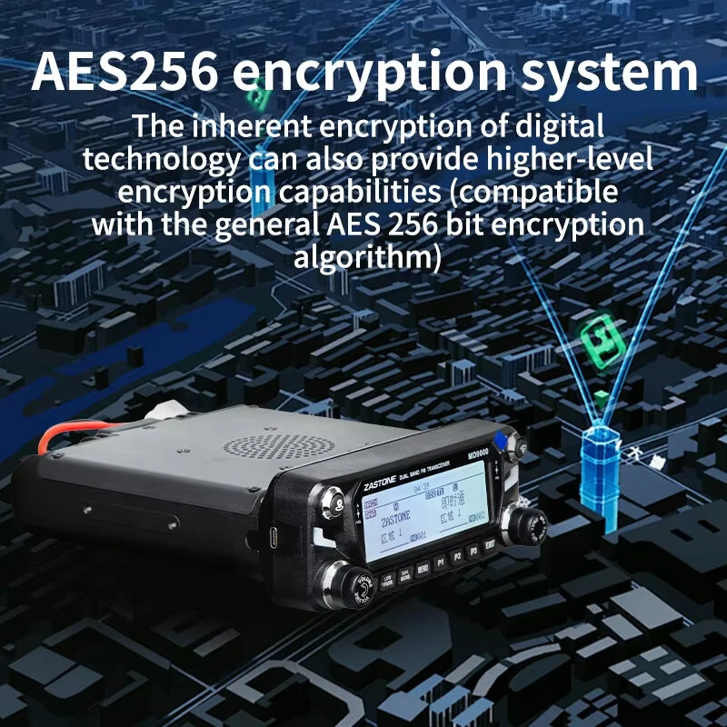 ZASTONE MD9000 DMR Digital Mobile Radio 50W Dual Band VHF UHF GPS AES256 Encryption APRS IPX2 Compact Vehicle Transceiver