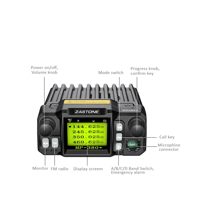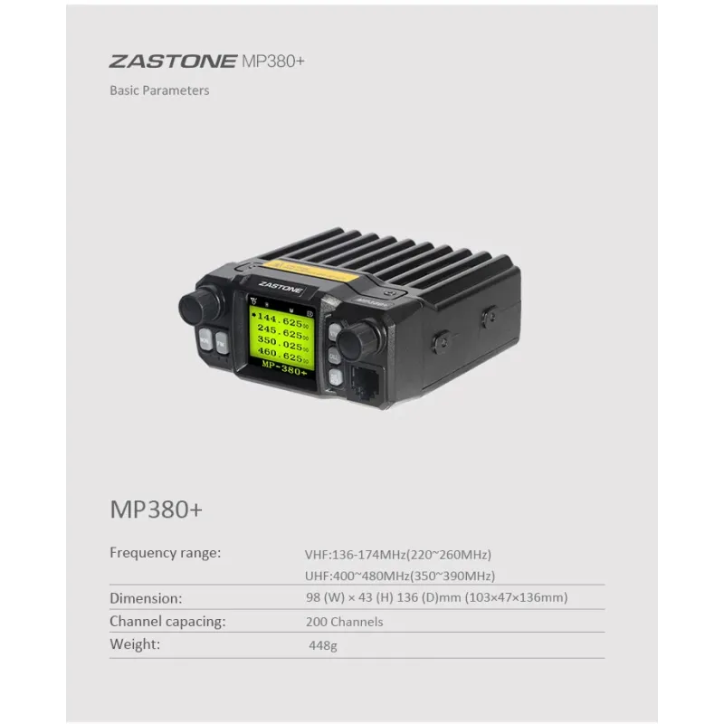 ZASTONE MP380+ Mobile Radio Car Walkie Talkie 25W Multi Band VHF UHF Mobile Transceiver 200 Channels Long Range Noise Reduction Powerful Signal Communication
