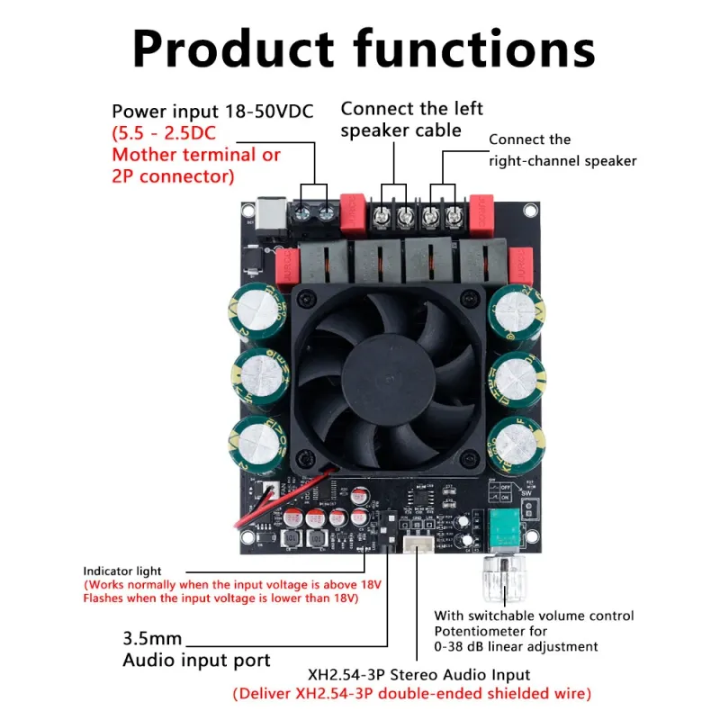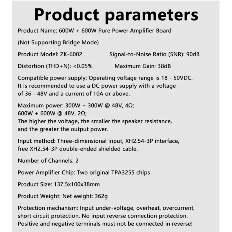 ZK-6002 600W 2 Channel Stereo Audio Amplifier Board High Power Class H Amp TPA3255 Chips Low Distortion Wide Voltage
