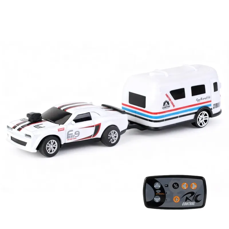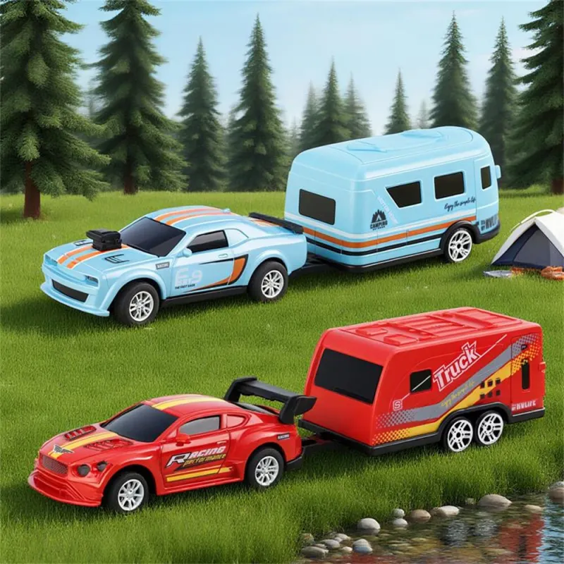 1/64 2.4G Alloy RC Car with Simulated RV Trailer Mini High-Speed Desktop Drift Racing Vehicle Model RTR