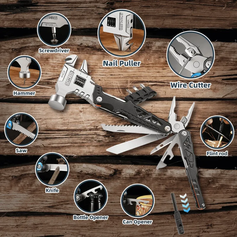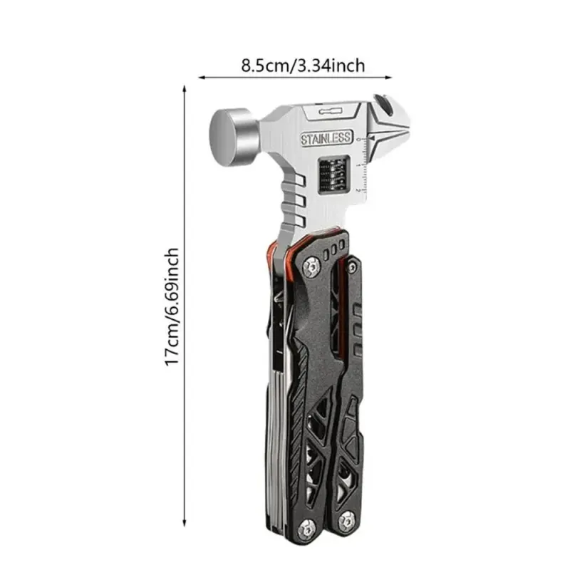 IPRee Portable Multifunctional Wrench Hammer Outdoor Camping Emergency Tools Combination Stainless Steel Folding Nail Hammer