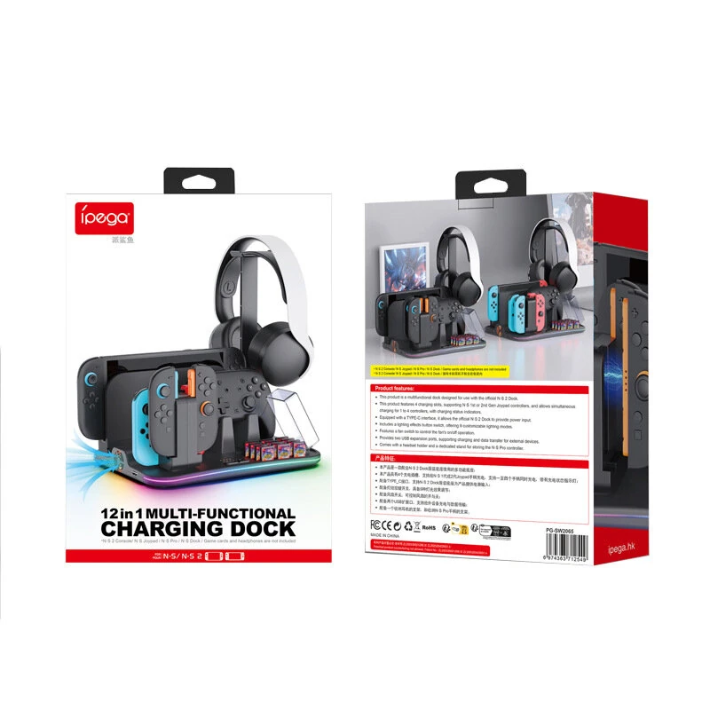 For Switch 2 12-in-1 Multi-functional Cooling and Charging Dock Switch Console Storage Dock with RGB Lighting IPEGA PG-SW2065