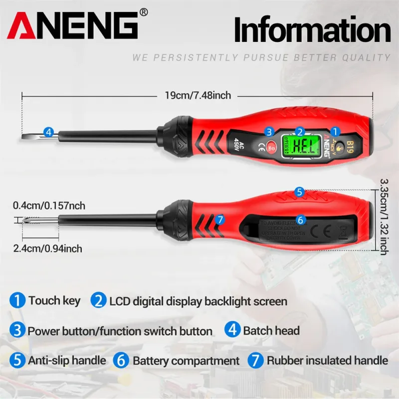 ANENG B19 Voltage Tester Pen Non Contact AC Voltage Detection 30-1000V Digital Display Multi Functional Insulated Handle Screwdriver Electrical Diagnostic Tool