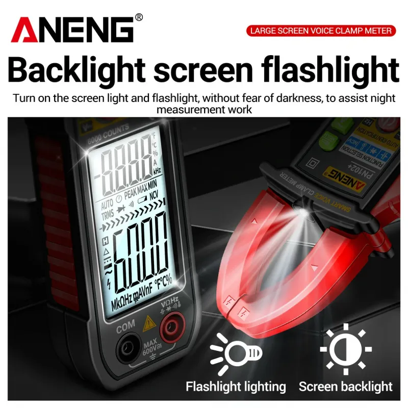 ANENG PN102+ Digital Clamp Meter with English Voice Prompt and Battery Excluded Delivery Accurate Current Measurement for Electrical Testing and Troubleshooting