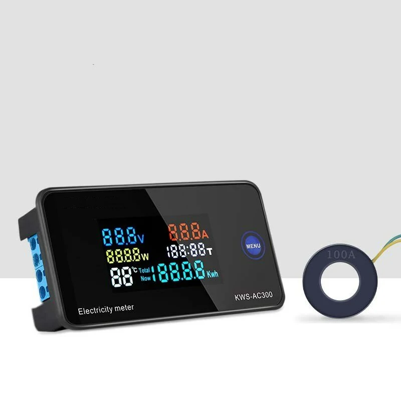 KEWEISI AC 50~300V 20A/100A Digital Electricity Meter Voltmeter Ammeter With CT Power Current Voltage Temperature Measurement