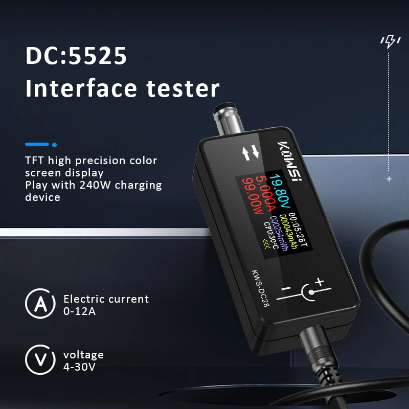 KWS-DC28 Current Voltage Tester 4-30V 12A Digital Ammeter 0.96-inch TFT Display High Precision Compatible with DC Devices