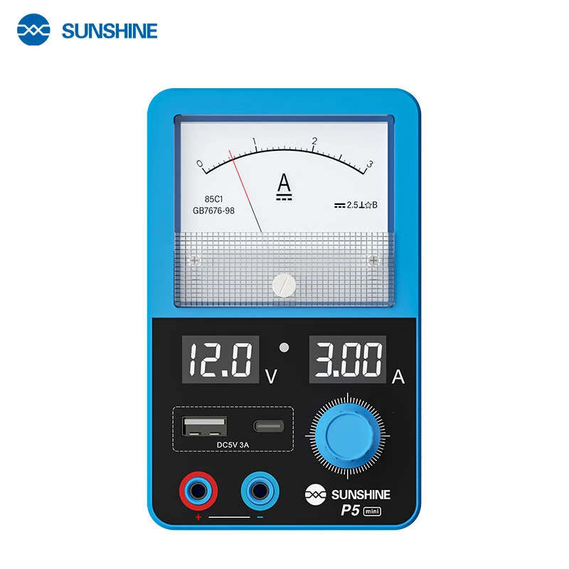 SUNSHINE P5 Mini Smart Power Supply Dual Screen Display 12V 3A Dual USB Ports Short Circuit Protection High-Precision Monitoring Voltage and Current Adjustment