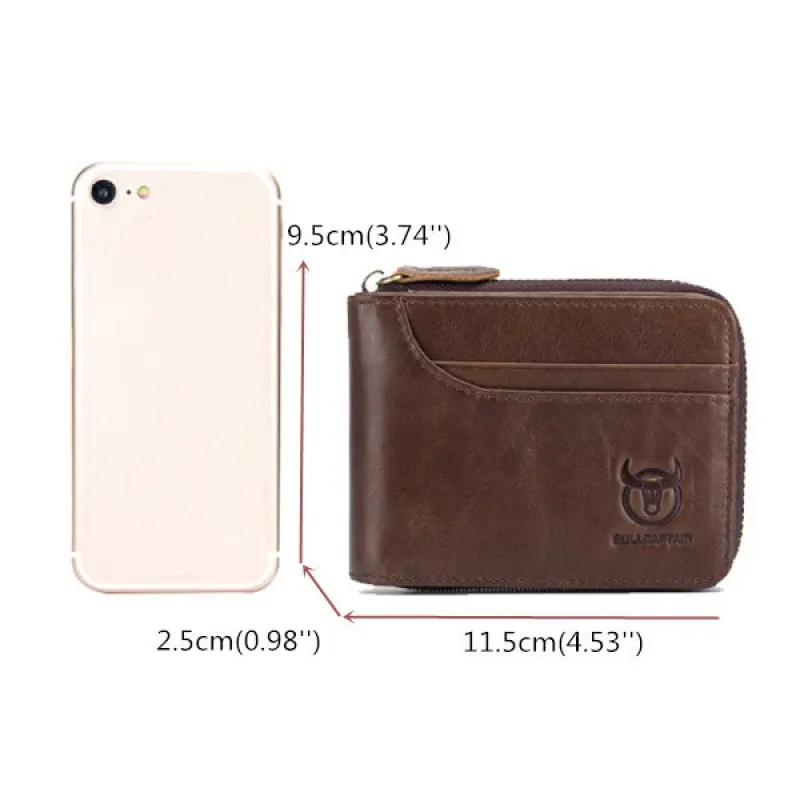 BULLCAPTAIN Men Short Wallet RFID Blocking Card Holder Cowhide Coin Purse Retro Genuine Leather Clutch Zipper Male Money Bags