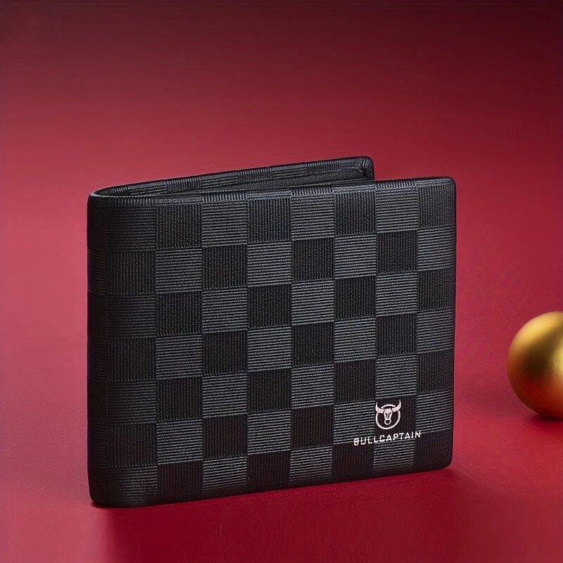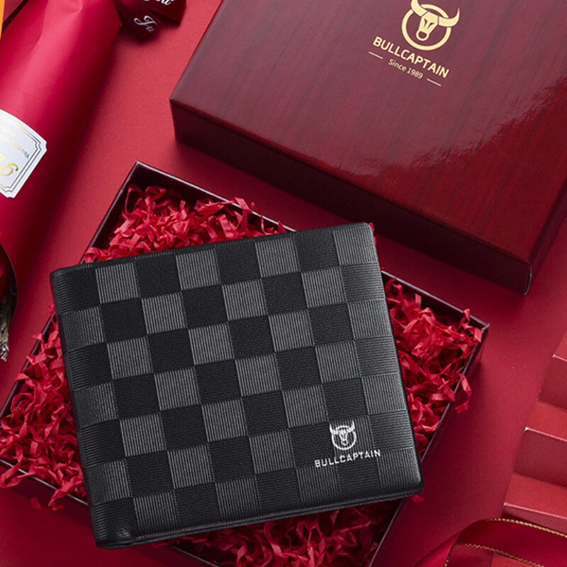 BULLCAPTAIN Men's Genuine Leather Wallet Black Cowhide Large Capacity Multi-card Folding Purse Credit Card Holder with Gift Box