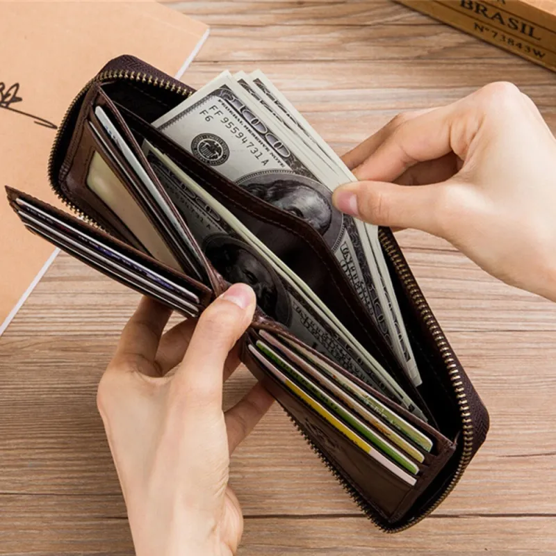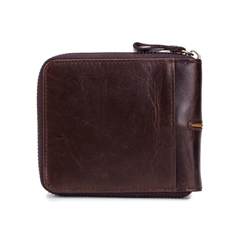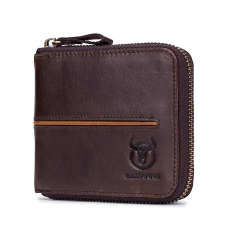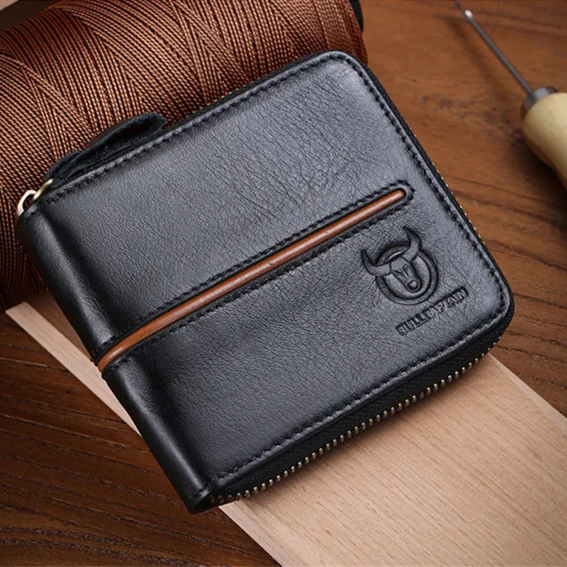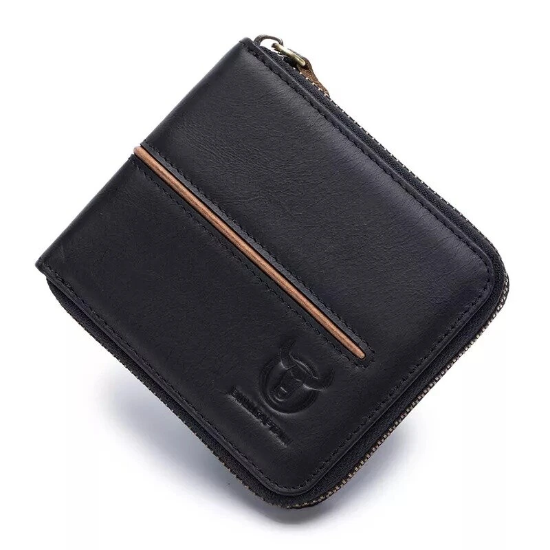 BULLCAPTAIN Men's Genuine Leather Wallet Horizontal Zipper Multi-card Design Business Card Holder Driver's License Money Clip