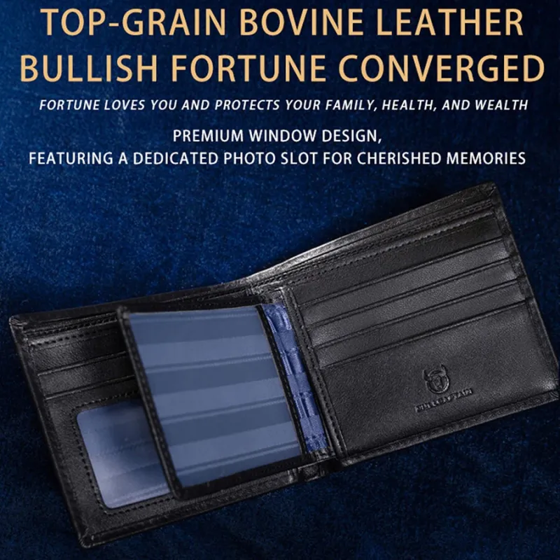 BULLCAPTAIN Men's RFID Genuine Leather Billfold Wallet with Gift Box Business Casual Multi-Card Slot Card Holder Money Clip Gift for Boyfriend Father Husband Gift