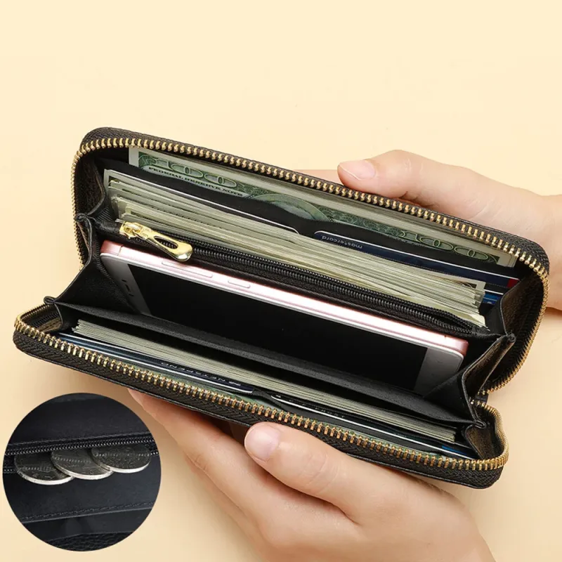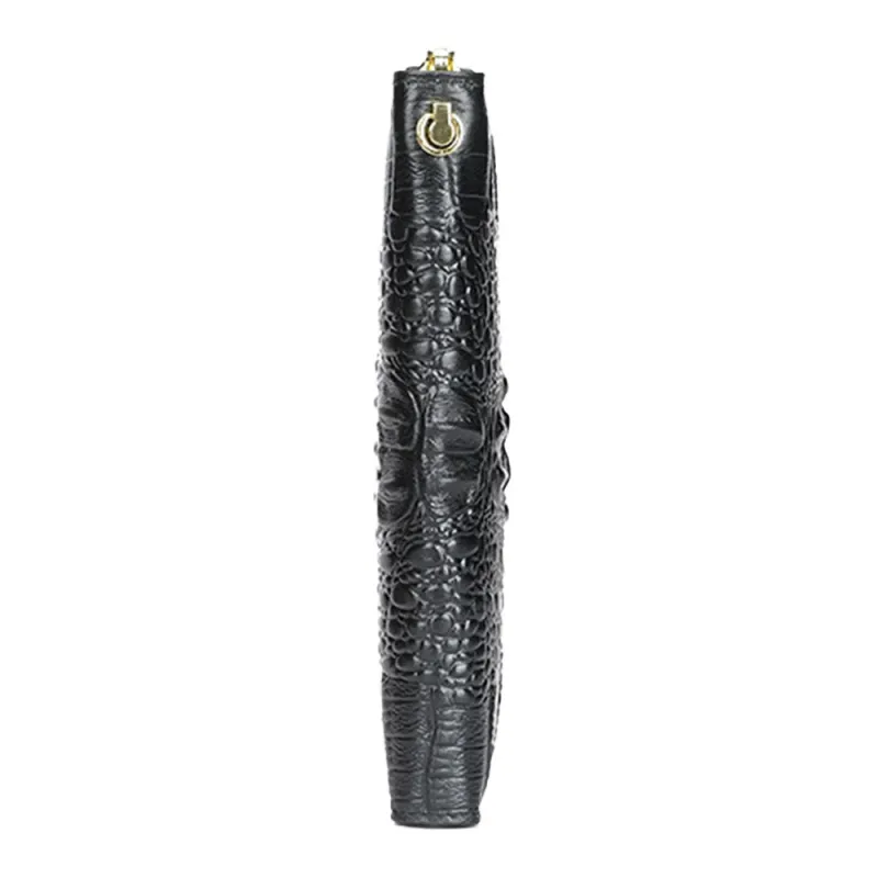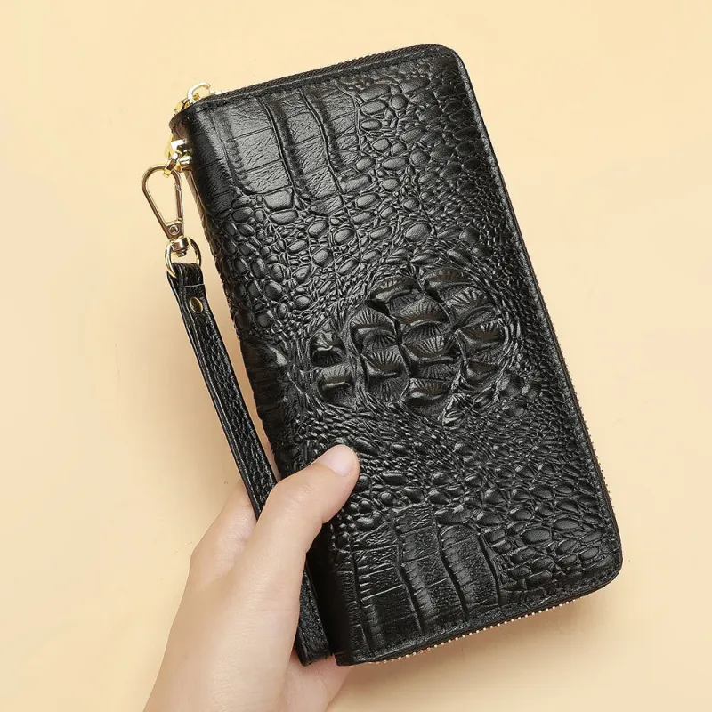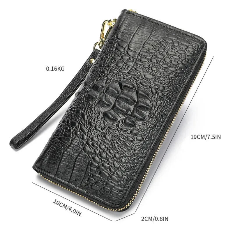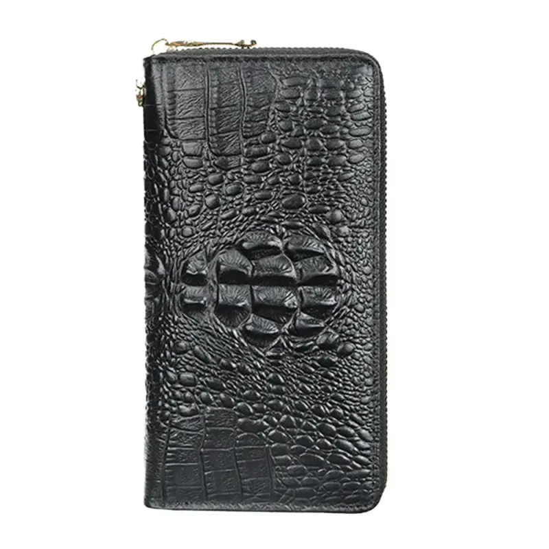 Ekphero Genuine Leather Crocodile Texture Wallet Unisex Long Business Handheld Bag Zipper Card Holder Fashion Cowhide Money Clip Purse