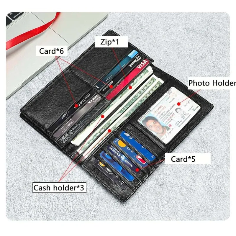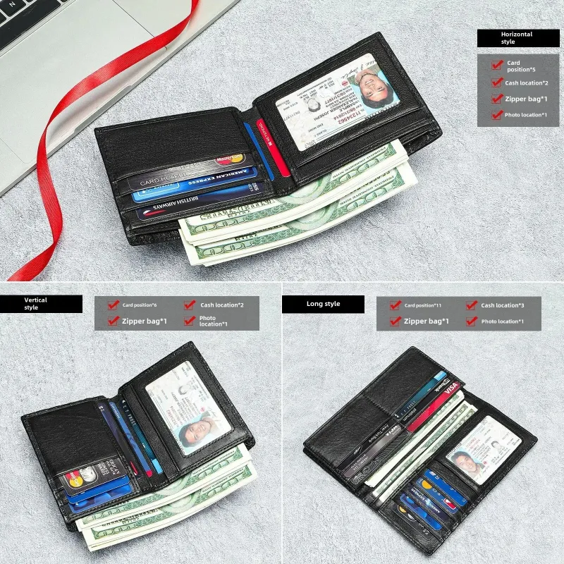 Ekphero Men's Genuine Leather Wallet Crocodile Texture Business Wallet Fashion Cowhide Bifold Money Purse Multi-slot Card Holder