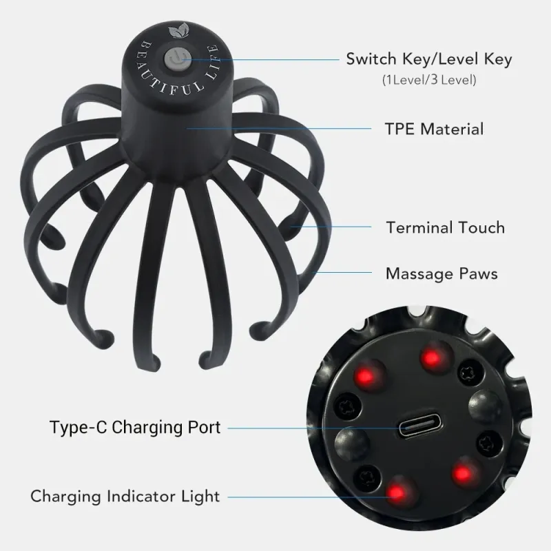 Electric Octopus Claw Head Massager Scalp Scratcher Massage Machine Relief Head Stress Fatigue Vibration Massage Hair Growth