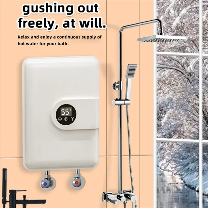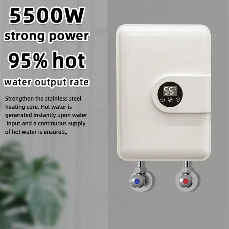 Tevorex 5500W 220V Instant Water Heater with Shower Head Portable Electric Heater with LED Touch Screen for Bathroom & Home