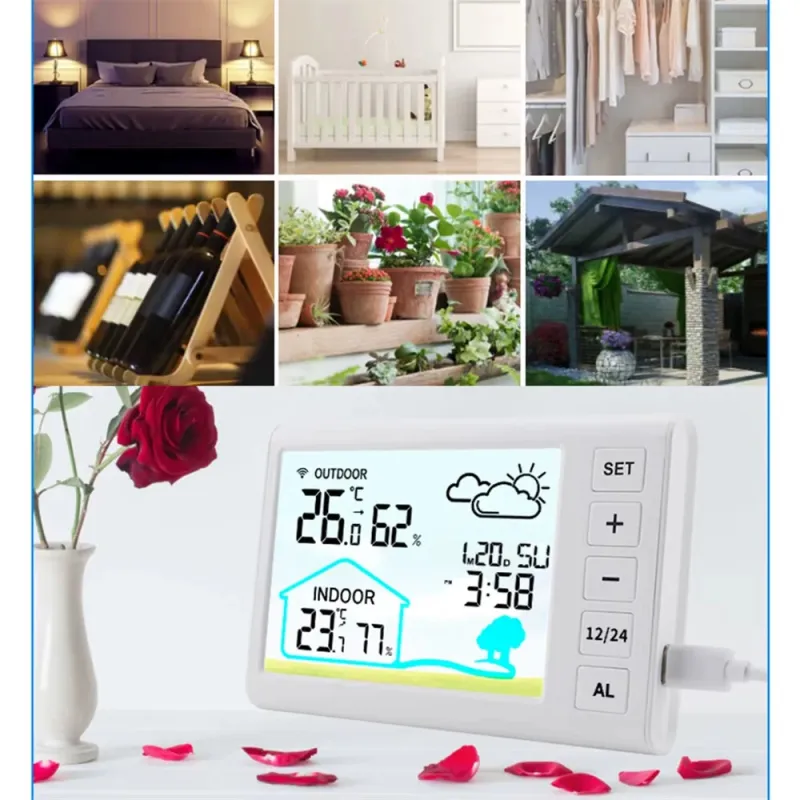 TS-FT006 Indoor Digital Thermometer and Hygrometer Mini LCD Wall Wireless Multifunctional Mini Clock with Humidity Weather Station