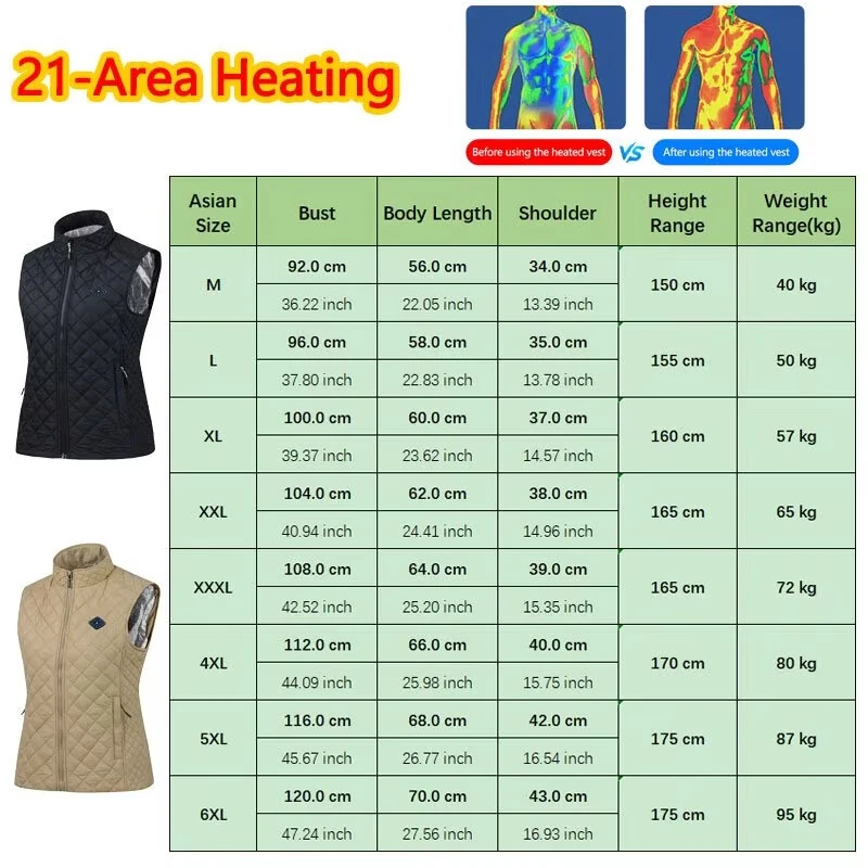 TENGOO 21 Area Heating Vest for Women USB Charging Lightweight Warm Outdoor Electric Heating Coats