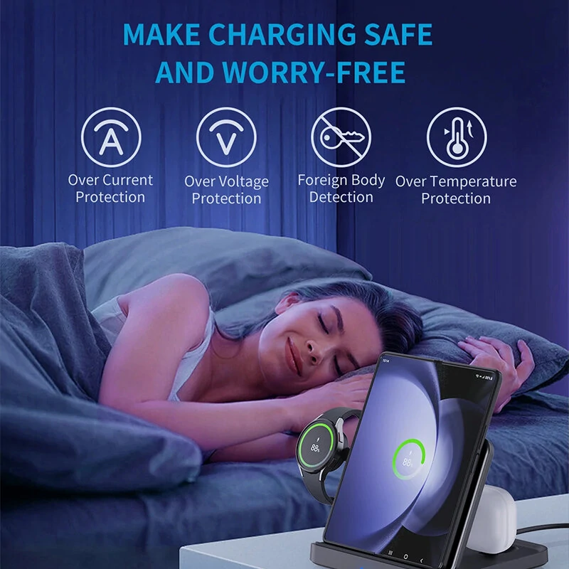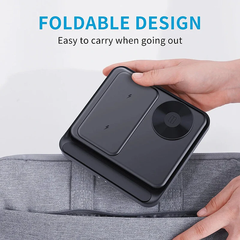 KCFold F16 15W Foldable Wireless Desktop Charger Fast Wireless Charging Pad for Smart Phones for iPhone 15 14 13 for Samsung Galaxy Fold/Flip Series for Apple Watch for Airpods