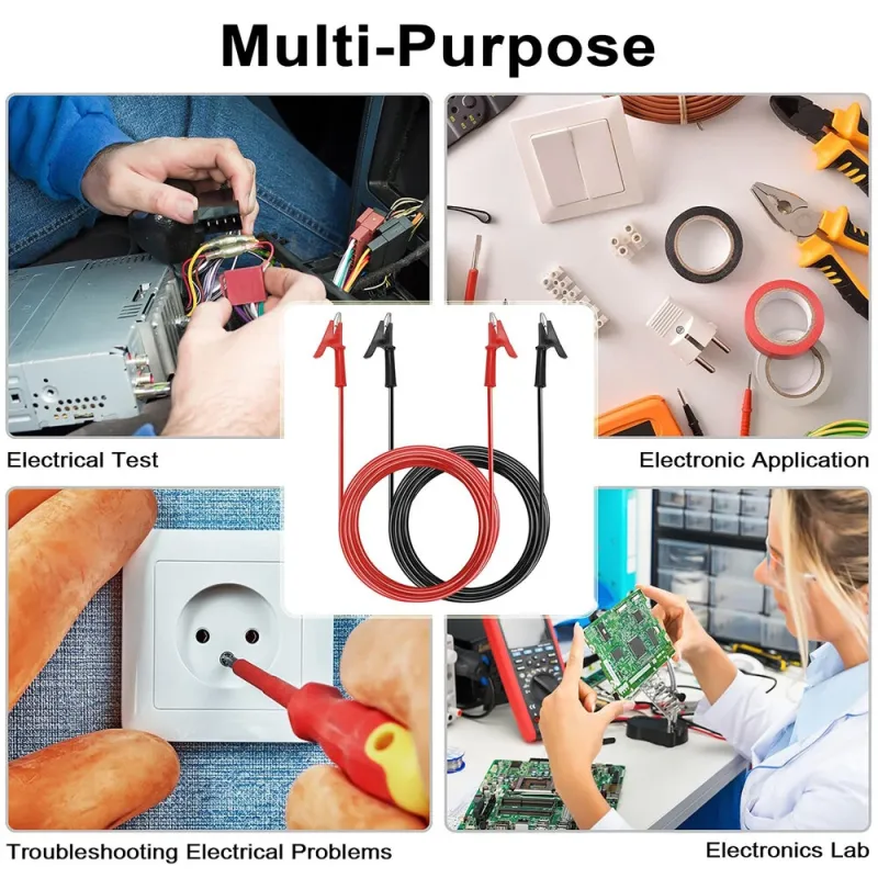 Dual Ended Crocodile Alligator Clips 15A Test Lead Wire Cable 3.3 ft with Copper Clamps Electrical Testing Accessories