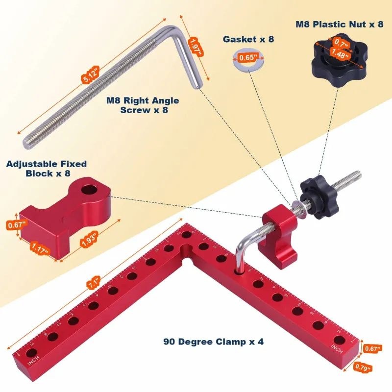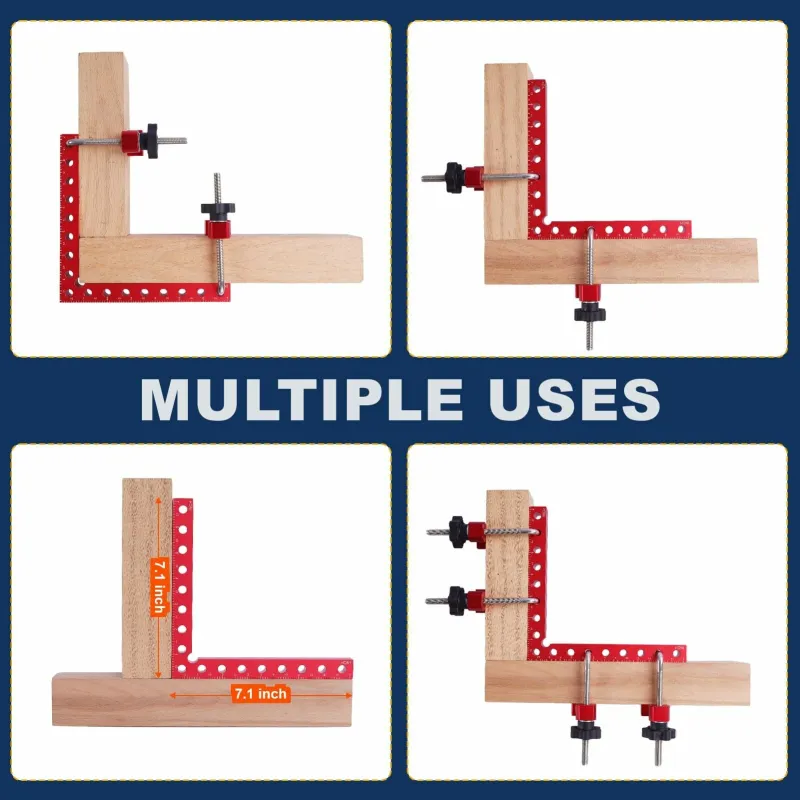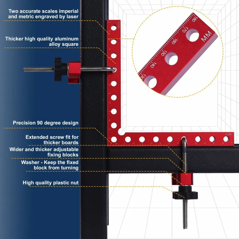 2PCS 180mm x 180mm 90 Degree Right Angle Clamps Positioning Squares MM/Inch Scale Aluminum Alloy Woodworking Carpenter Corner Clamping for Picture Frame Cabinet Drawer