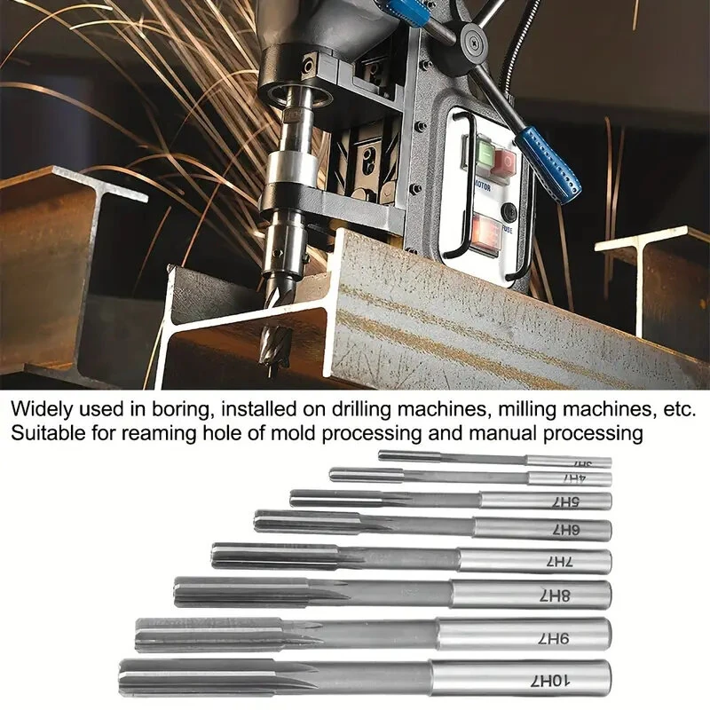 8PCS High-Speed Steel Chucking Reamer Set H7 Tolerance 3mm-10mm Diameters Straight Flute Milling Cutter for Lathe Machines
