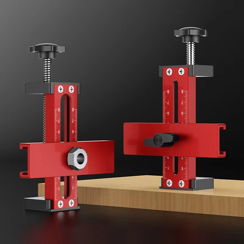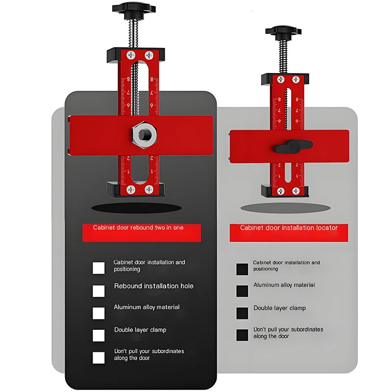 Adjustable Woodworking Cabinet Door Installation Jig Aluminum Alloy Quick Positioning 2-in-1 Device 0-75mm Thickness 15-70mm Rebound Drilling Tool
