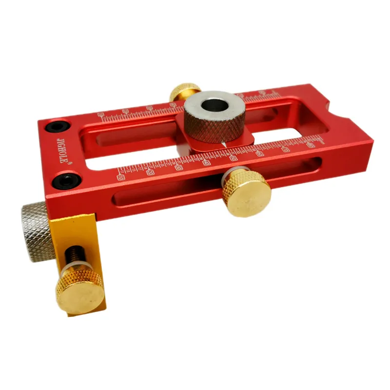 Aluminum Alloy 2 in 1 Screw Jig Adjustable Cross Dowel Drill Guide Woodworking Pocket Hole Jig for Bed Cabinet Screw Punch Locator