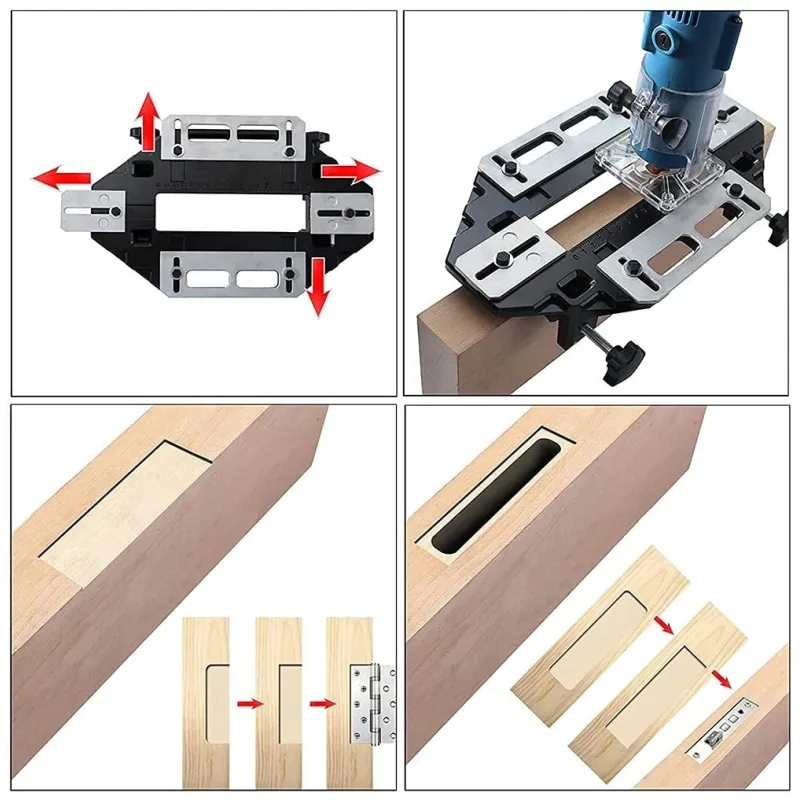 Aluminum Alloy Door Hinge Jig Guide Woodworking Door Hinge Template Slotting Locator Door Lock Jig for Wood Cabinet Kitchen Door Lock Installation