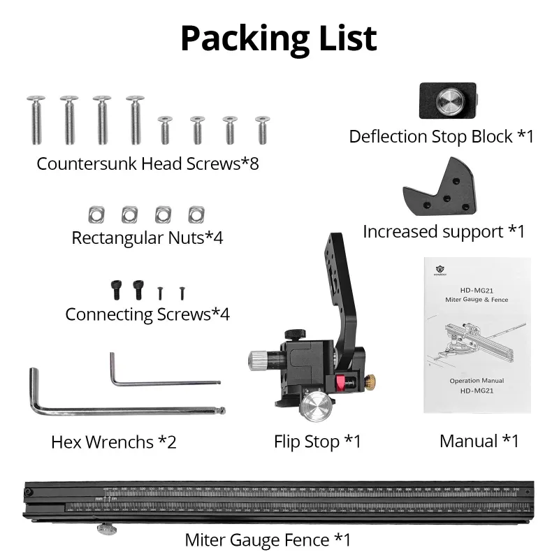 HONGDUI HD-KS22 Aluminum Miter Gauge Fence Extended Support for Woodworking Miter Gauge Table Saw Router Table