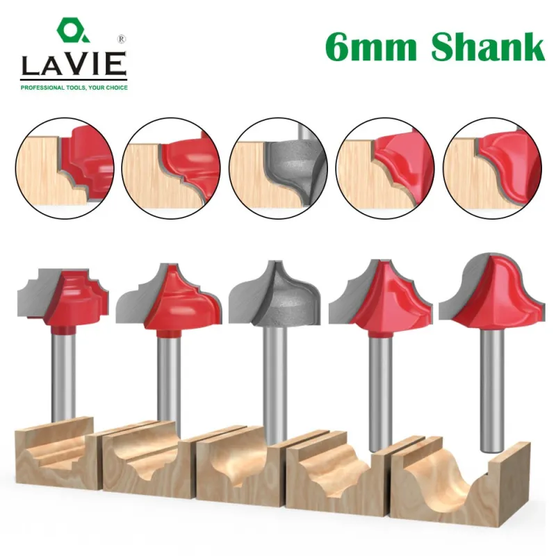 5PCS 6mm Shank Woodworking Router Bits Tungsten Carbide Cutter Rust Resistant Coating High Precision CNC Router Tool
