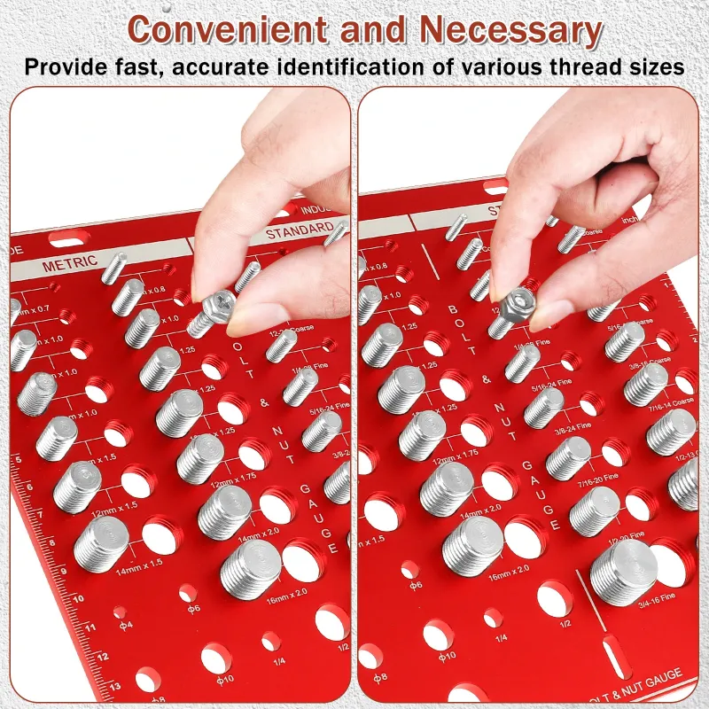 34 Nut and Bolt Thread Checker Bolt Size and Thread Identifier Gauge Standard and Metric Bolt and Nut Gauge with Inch and Centimeter Ruler for Accurate Measurement