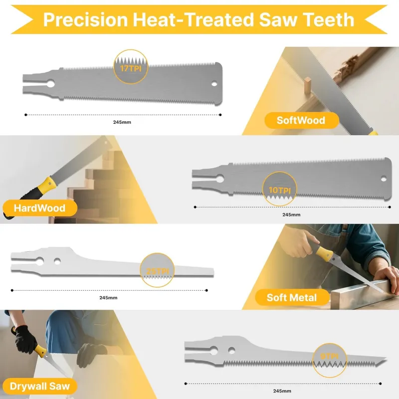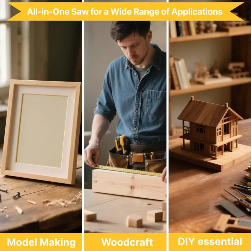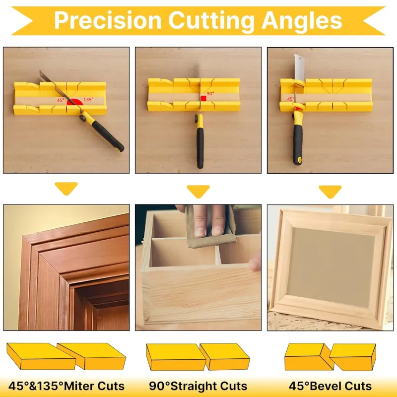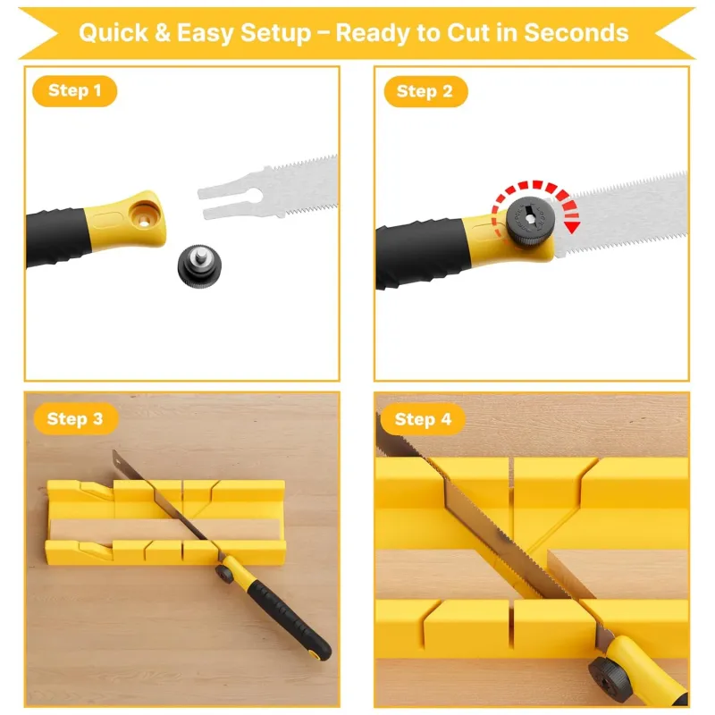 4pcs Hand Saw Set Wood Cutting Kit Precision Miter Box 3 Replaceable High Carbon Steel Blades Hardwood Softwood MDF PVC Drywall Carpentry DIY Furniture Making