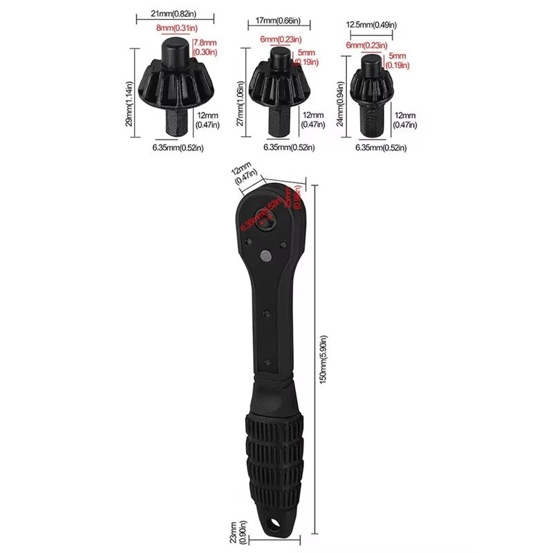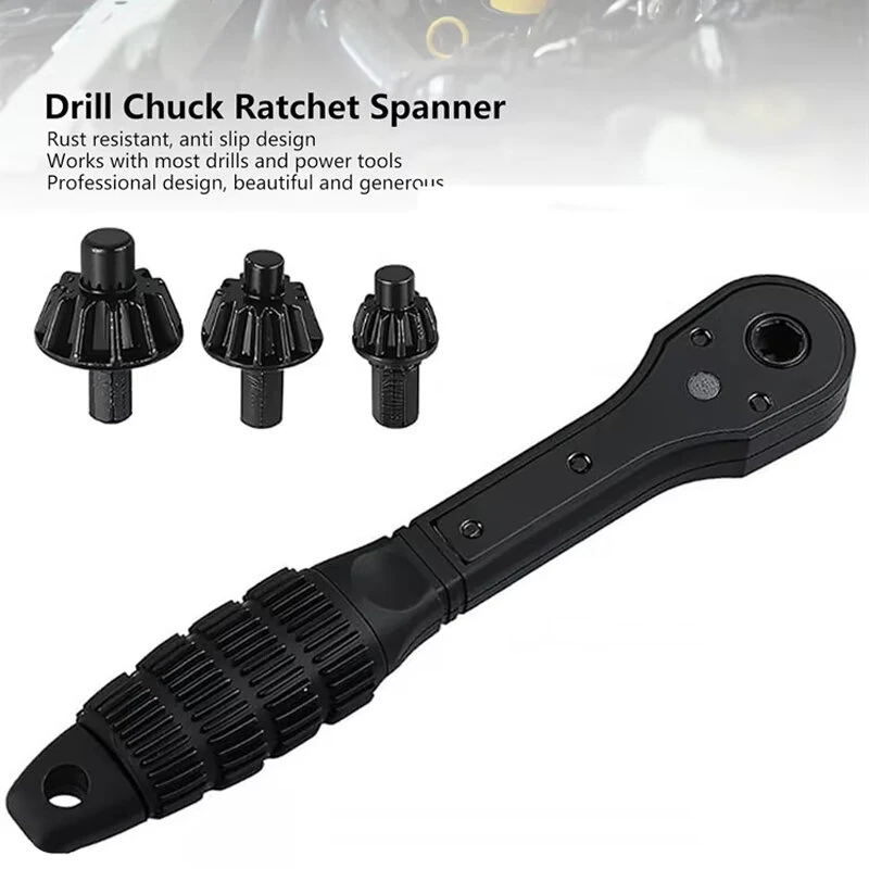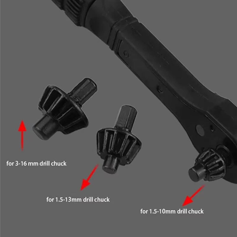 Universal Ratchet Drill Chuck Key 3 Socket Sizes 1.5-10mm 1.5-13mm 3-16mm 45 Steel Rubber Handle Dual Head Wrench for Electric Cordless Bench Drills